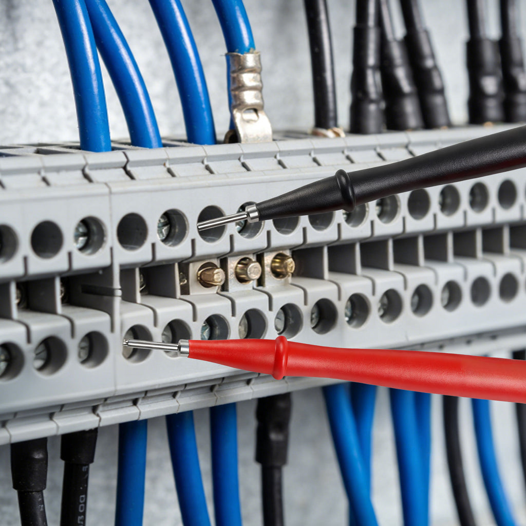 Ein Paar (rot, schwarz) schlanker Sondenkörper zum Prüfen eng beieinander liegender oder vertiefter Anschlüsse