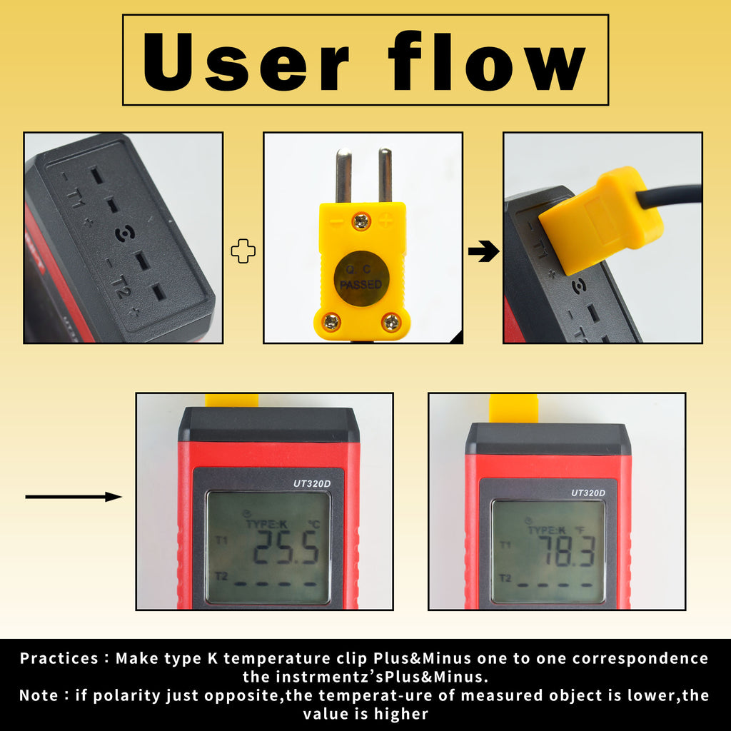 Good for Multimeters, Clamp Meters and Thermometers that Accept a Type K Temperature Probe.